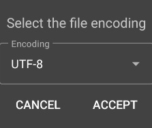 In this case, once the file is selected, you will only need to choose the file encoding.