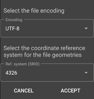 Another to select the Coordinate Reference System (CRS) used by the geometries in the file.